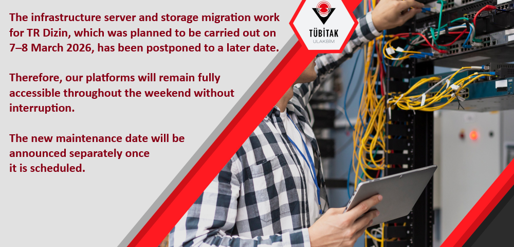 The infrastructure server and storage migration work for TR Dizin, which was planned to be carried out on 7–8 March 2026, has been postponed to a later date.